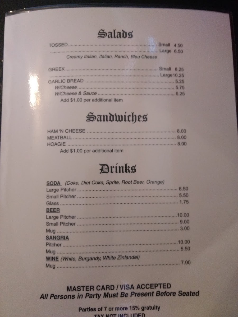 Cheese, canned or Fresh Mushrooms, Red Onions, Green Peppers & Black Olives