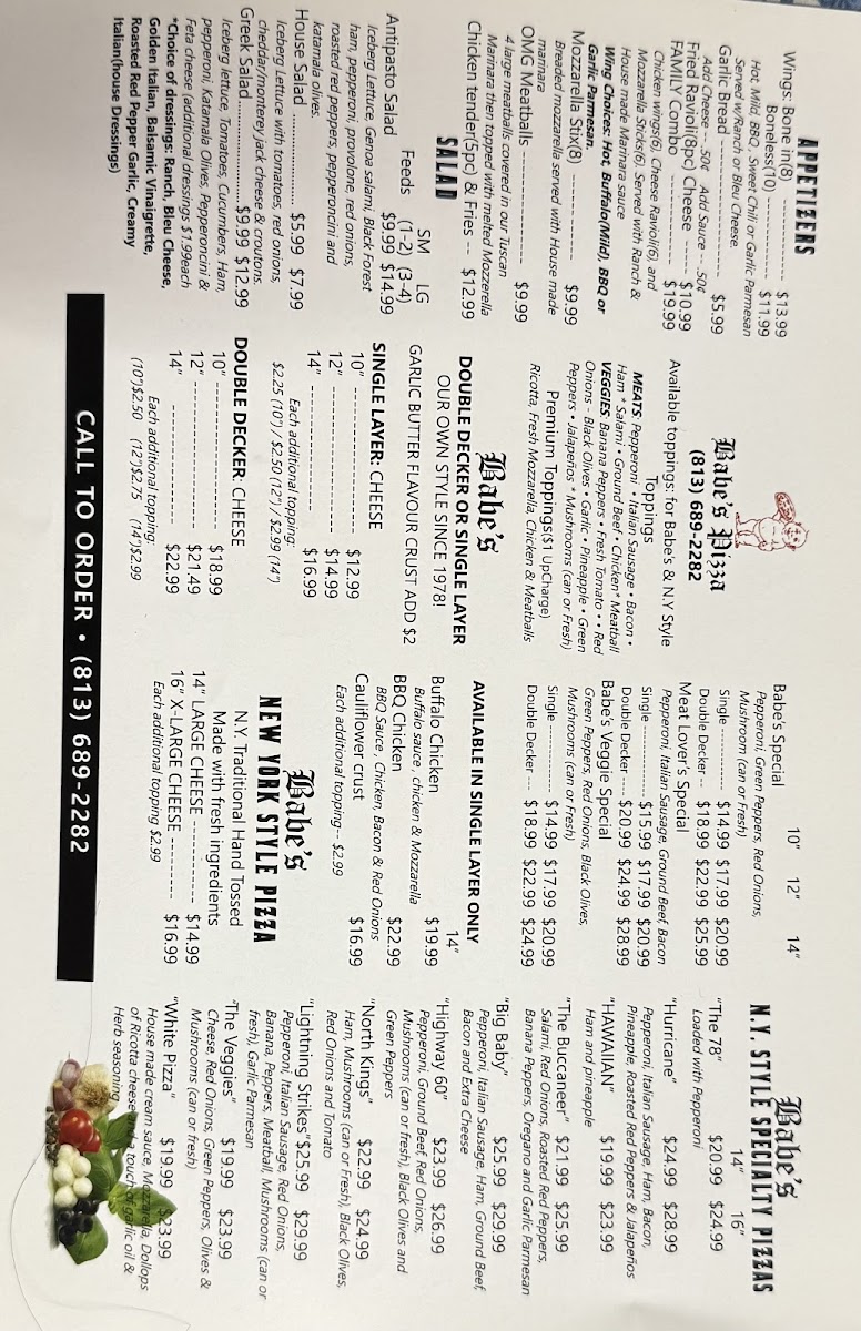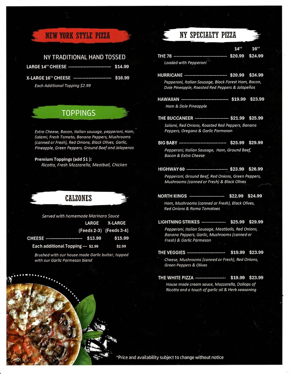 Cheese, Pepperoni, Red Onions, canned or Fresh Mushrooms & Green Peppers