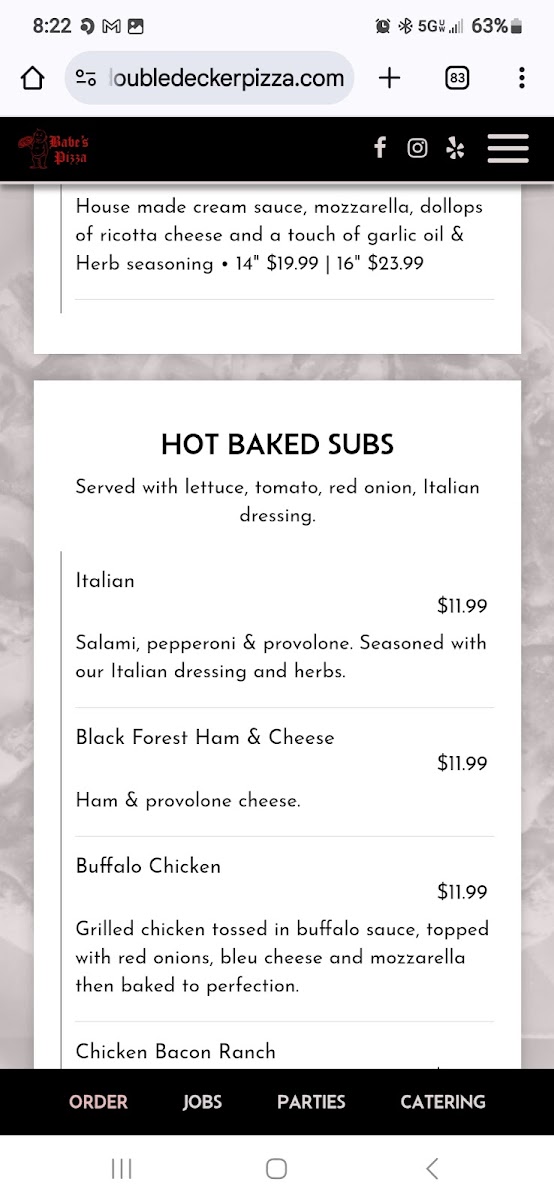 House made cream sauce, Mozzarella, Dollops of Ricotta and a touch of garlic oil & Herb seasoning